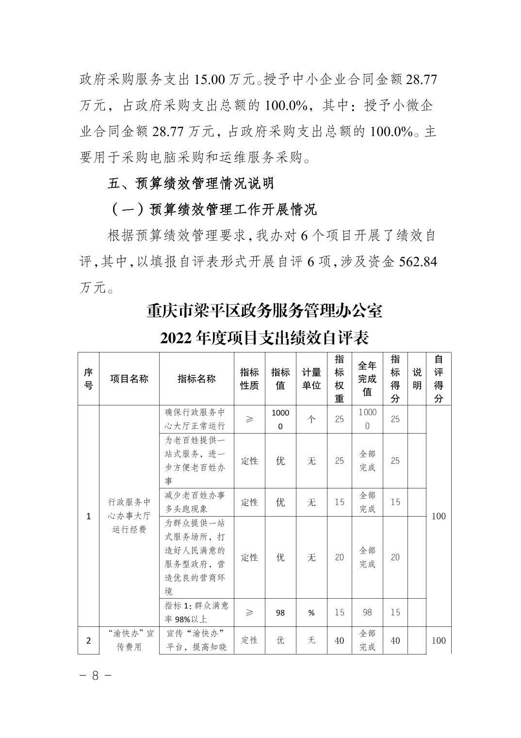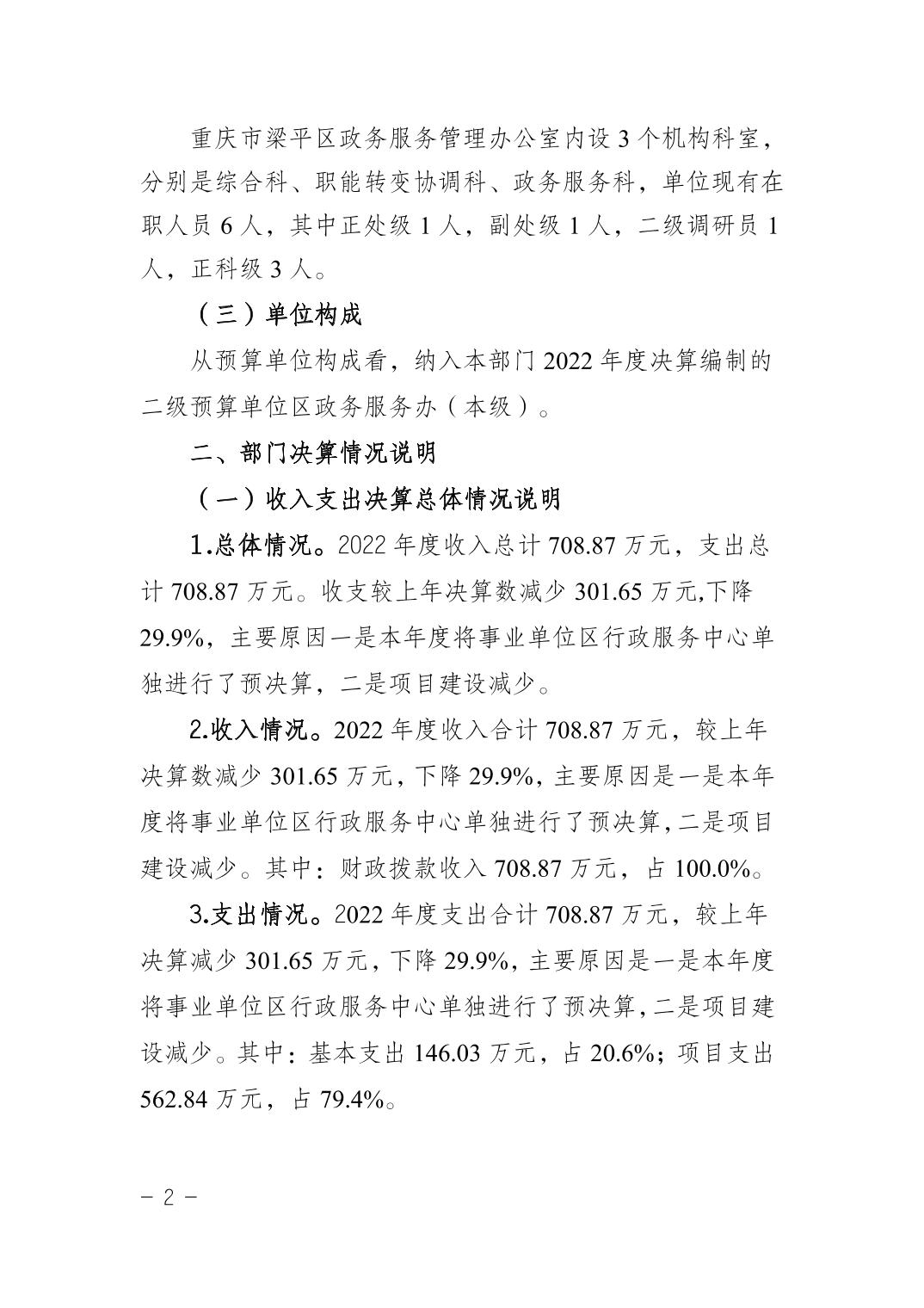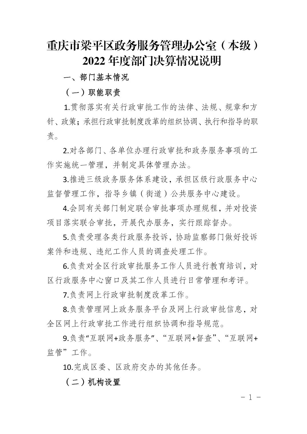 標題 重慶市梁平區政務服務管理辦公室(本級)2022年度部門決算情況說明