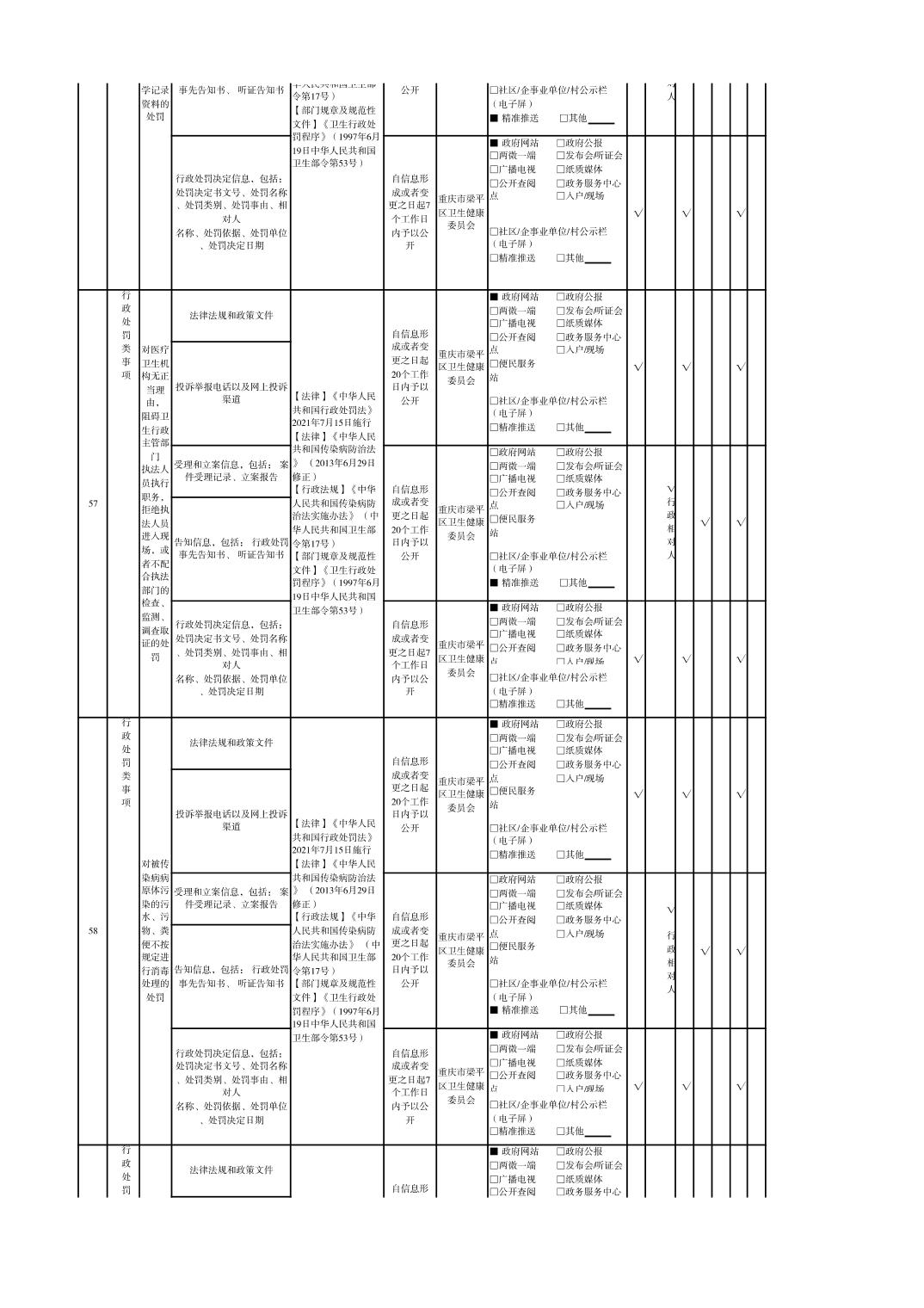重慶市梁平區衛生健康領域基層政務公開標準目錄
